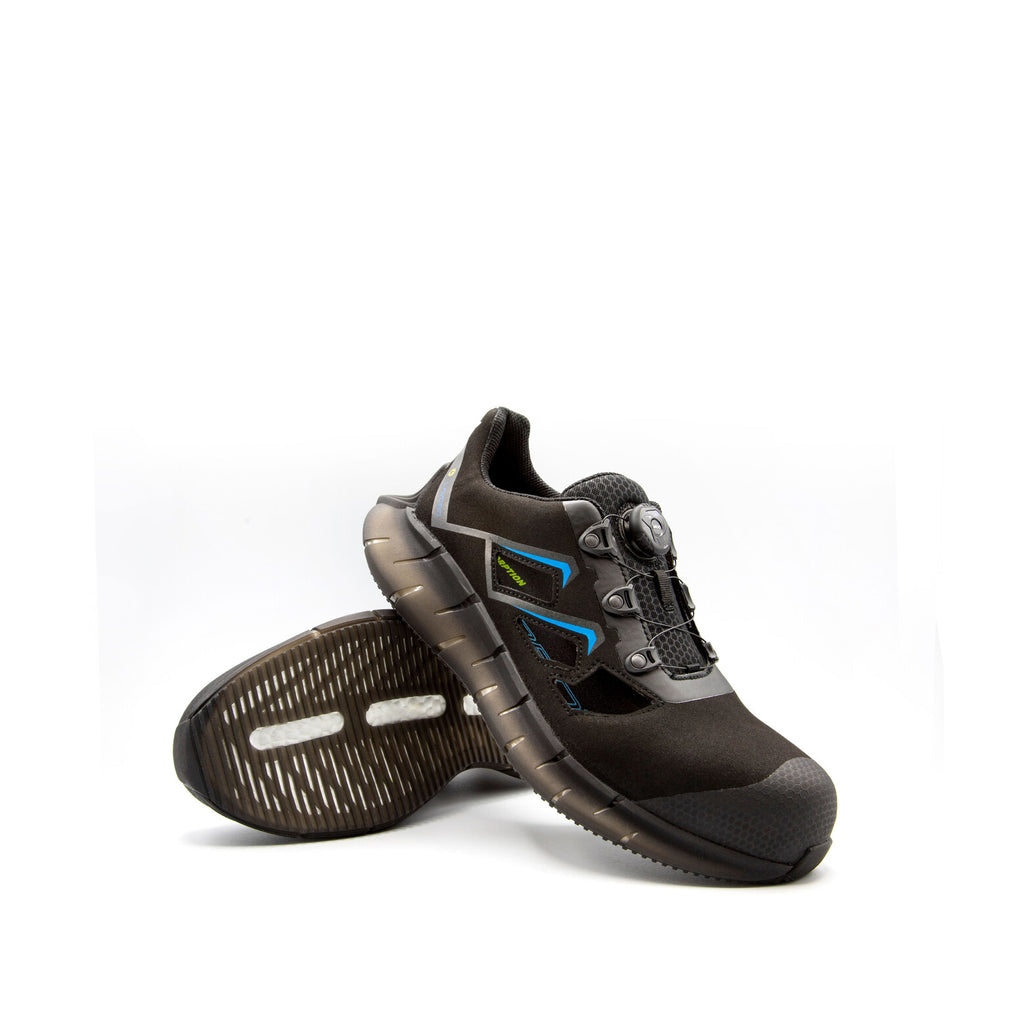 Starsight Blue is a S1P SRC protection class safety sandal recognized for its lightness and modern look. The technical details make it unique, with a Hi-Tech microfiber, a breathable dri-lex lining and a quick fastening system, putting on your sandals has never been so easy. Foot health and comfort are ensured by the innovative energy return technology and excellent shock absorption system of the sole that balances the body weight throughout the whole foot, reducing knee and back pain and making it easy to take the next step forward. Sporty safety sandal ranging from size 39 to 47, Starsight Blue is the ideal sandal for light industries, electronic services and everyday activities.
